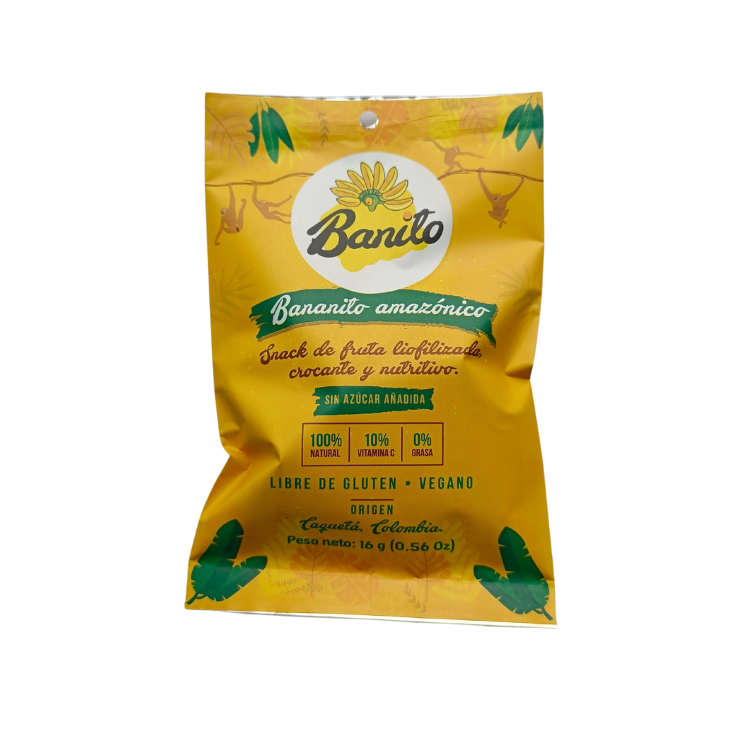 El Banito de 16 gramos es una pequeña pero potente barra de chocolate con plátano, que combina la suavidad del cacao con el sabor dulce y natural del plátano. Perfecto para un snack rápido y delicioso, este producto destaca por sus ingredientes de alta calidad y su compromiso con la sostenibilidad